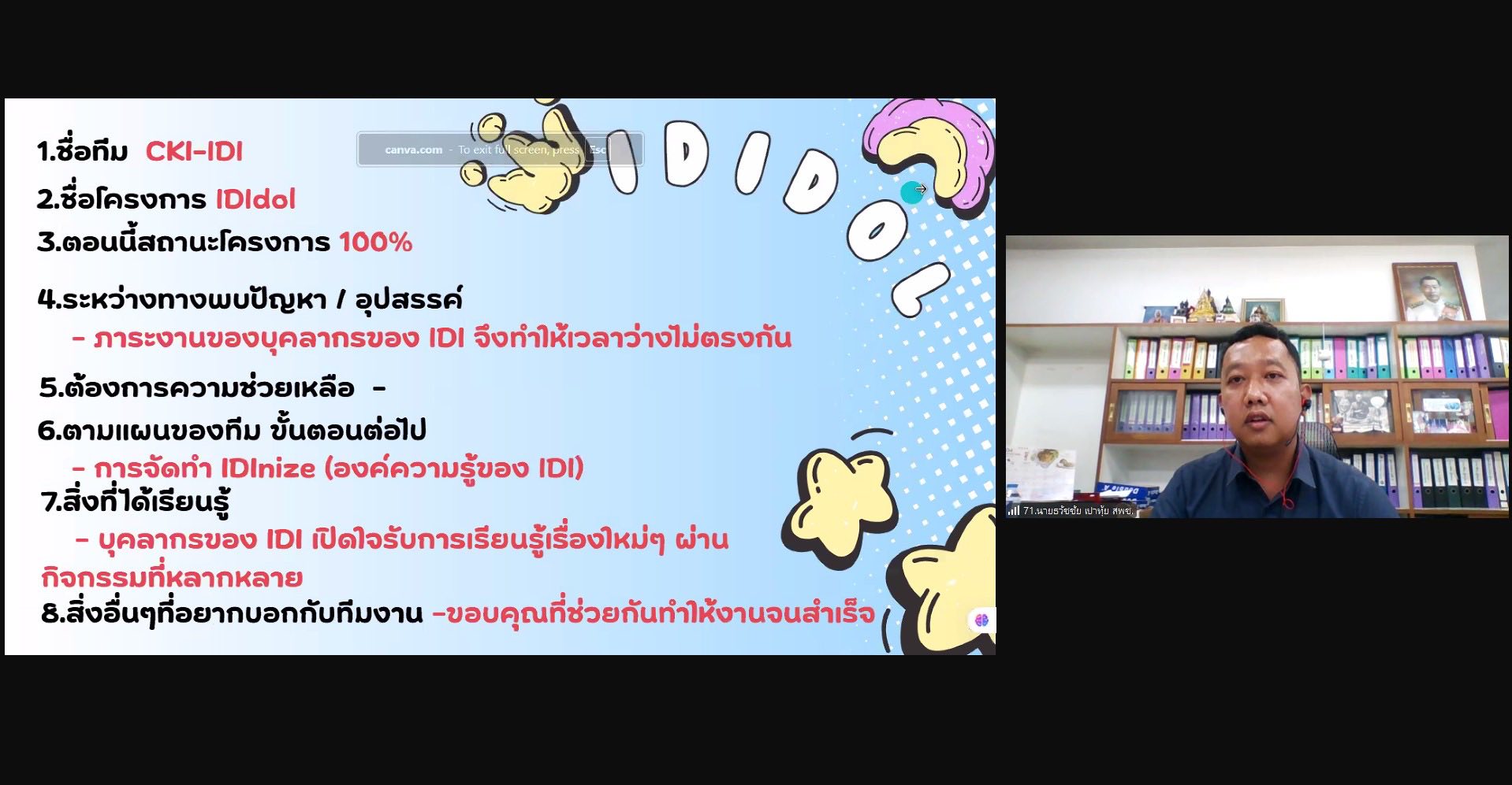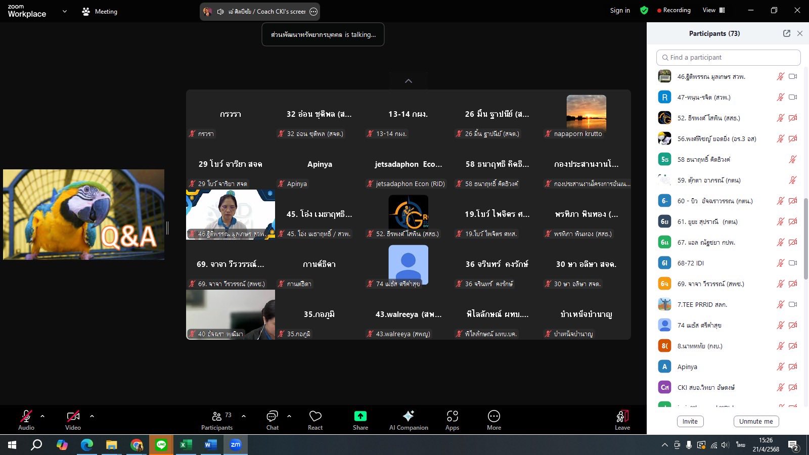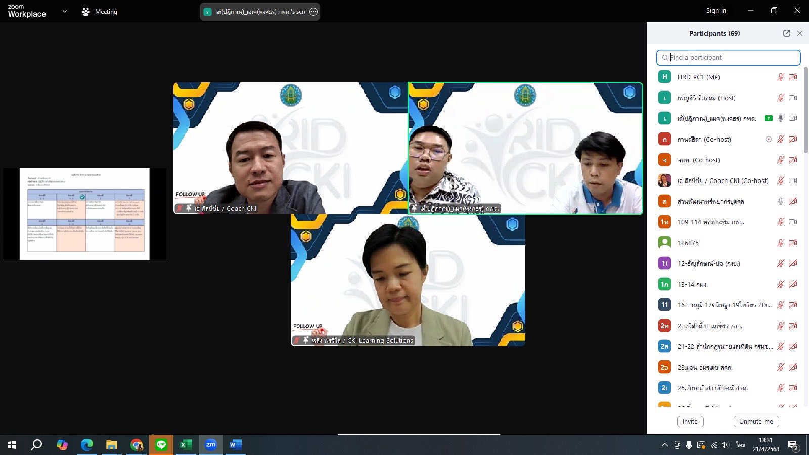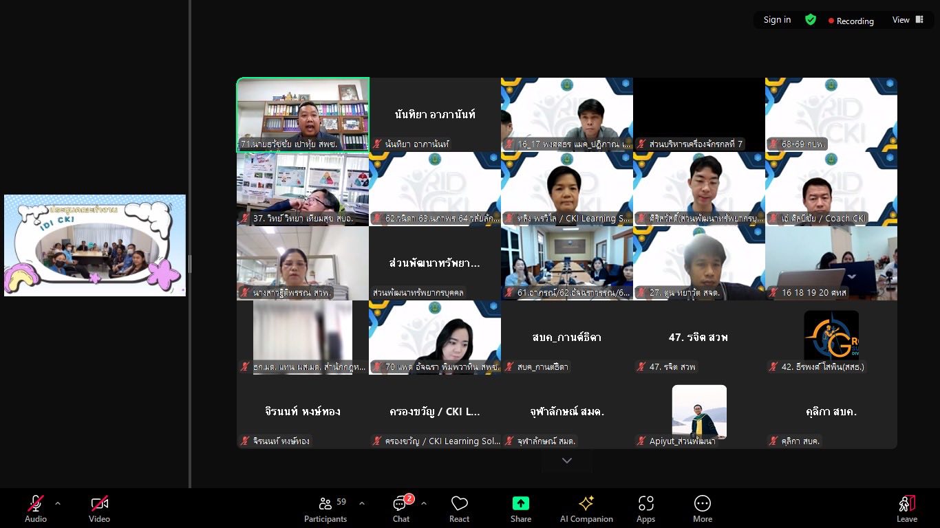 ส่วนพัฒนาทรัพยาบุคคล สำนักบริหารทรัพยากรบุคคล จัดโครงการสัมมนาเชิงปฏิบัติการ CKI Follow up ในรูปแบบ Online โดยได้รับเกียรติจาก อาจารย์พรวิไล ธรรมพานิชวงศ์ และอาจารย์ศิลป์ชัย จุลสุคนธ์ จาก CKI LEARNING SOLUTIONS CO.,LTD เป็นวิทยากร เพื่อติดตามผลความคืบหน้าการดำเนินโครงการ CKI Sandbox ในการเสริมสร้างแนวทางปฏิบัติตามค่านิยมและวัฒนธรรมของกรมชลประทาน และเสริมสร้างการจัดการความรู้ที่เชื่อมโยงกับการสร้างนวัตกรรมในการทำงาน